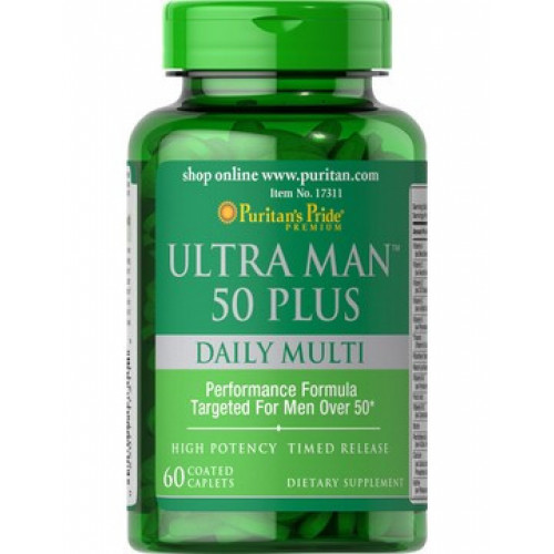 Ultra man 50+ – мужской мультивитаминный комплекс. Его специальная формула с замедленным поглощением насыщает ваш организм всеми необходимыми элементами на протяжении длительного периода времени.
